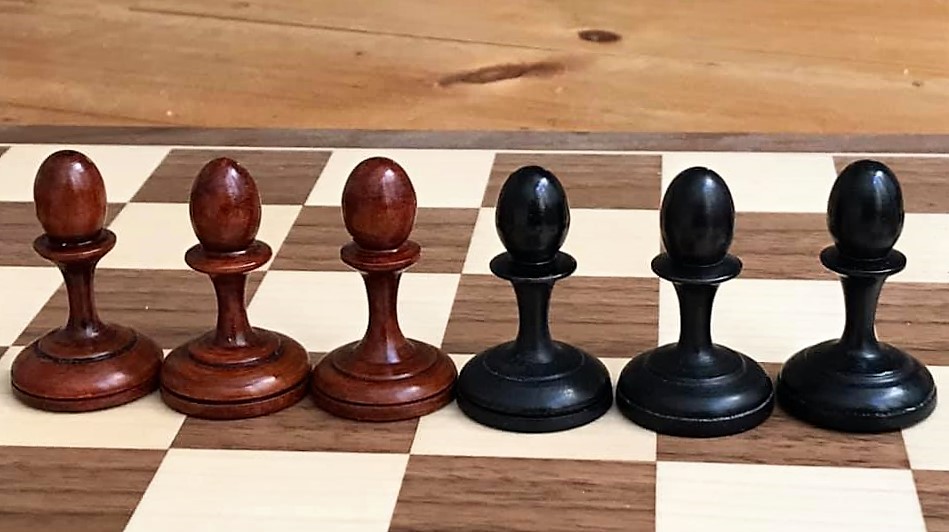 Porat’s pawns echo the Smyslov pawns while exaggerating the ovoid shape of their heads.