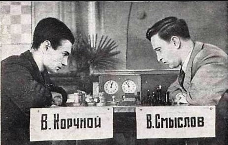 The second photo documents a game between Viktor Korchnoi and Vasily Smyslov playing in the 1951 Mikhail Chigorin Memorial tournament, held in Leningrad.