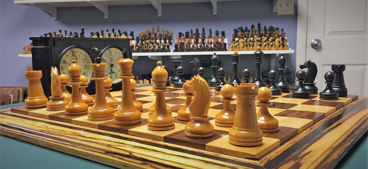 Moscow collector Alexander Chelnokov believes this line of sets was produced by the Red Combine, located near Zvenigorod, roughly 65 km west of Moscow, whereas Artel Kultsport was located in central Moscow. Chelnokov administers a Facebook group titled Russian Chess Sets (Tsarist, Soviet, and Modern) that features his magnificent collection of Tsarist and Soviet sets, and which I heartily commend to your viewing. It is ironic that this rare instance of a relative abundance of information about the production of a set provides us conflicting data, but such is the enigma of Soviet chess sets.