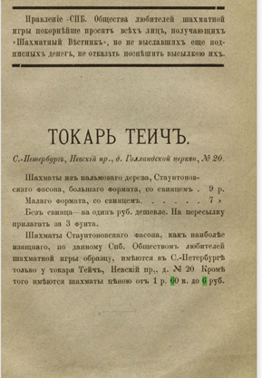 Andrei Nikolaevich Hardin was passionately fond of chess. He subscribed to a great deal of foreign chess literature and could sit alone at the board for hours. According to him, he learned to play well because, having found himself somewhere in the wilderness and having a lot of free time, he would sit for days reading chess literature and studying the theory of this game. For about a year or a little more, he did not play with anyone, and after this sitting, having met Chigorin, he showed himself to be a first-class player.
